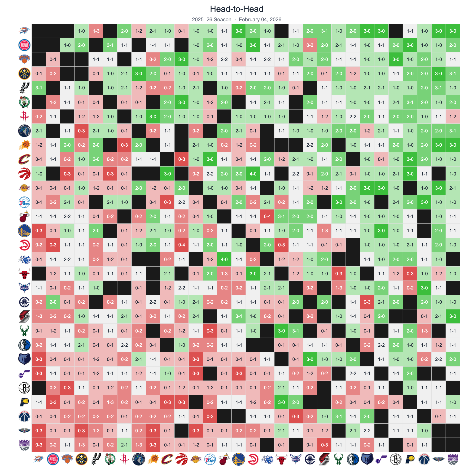 We update all NBA graphs weekly, typically on Tuesdays. This cadence captures meaningful movement in the standings while keeping the archive manageable. Each week's snapshot is preserved so you can see how the season unfolded over time.