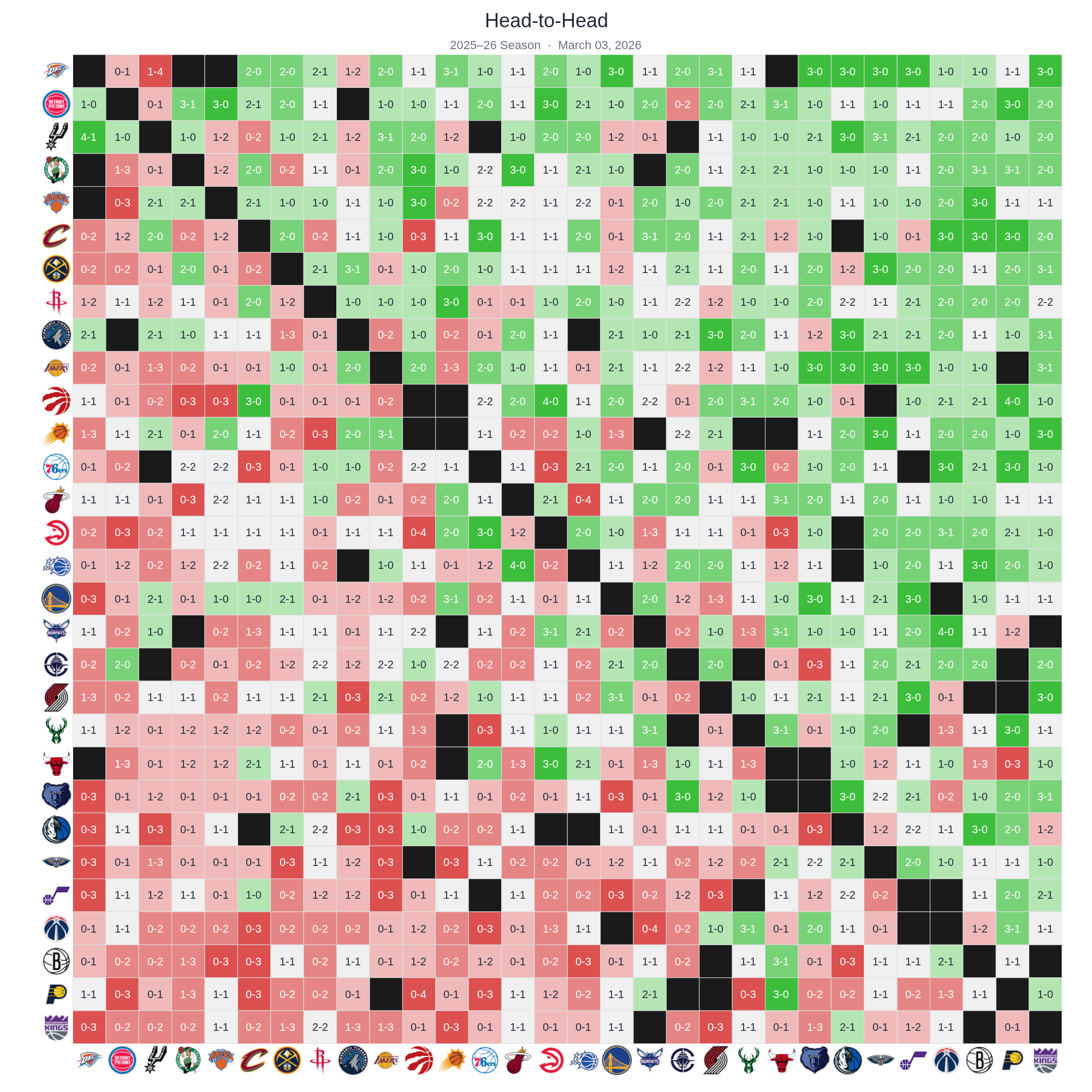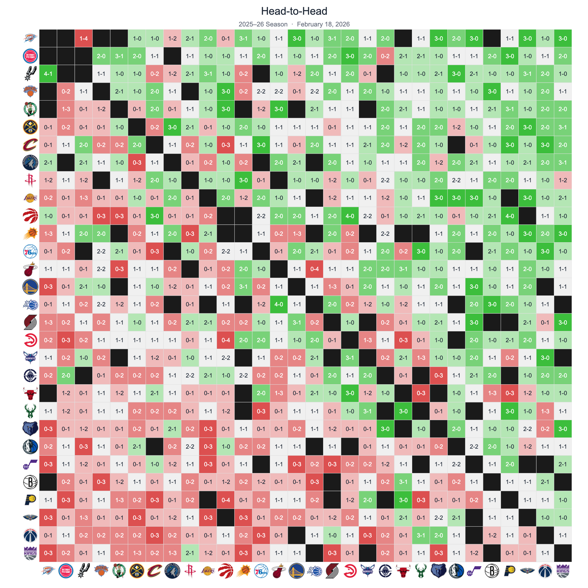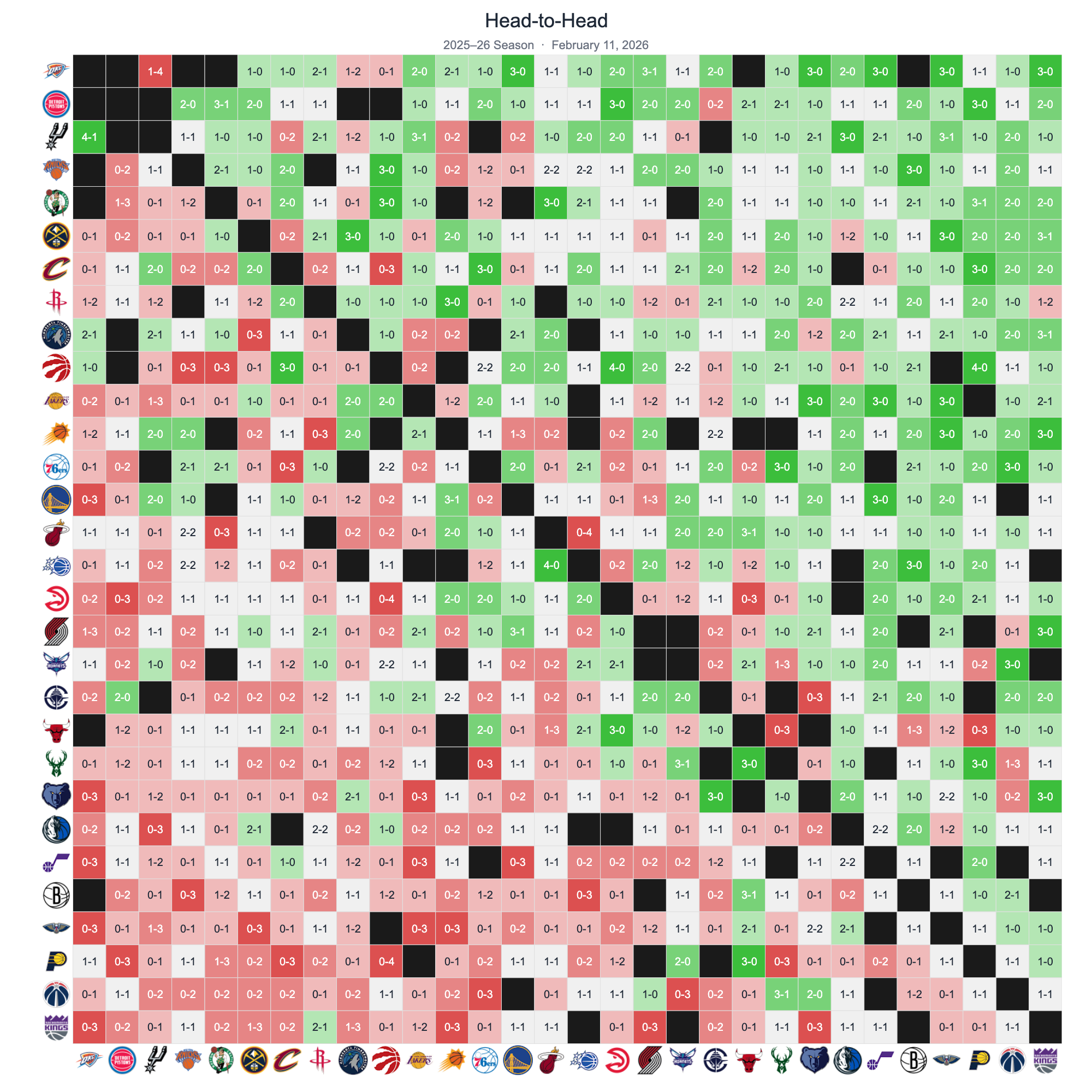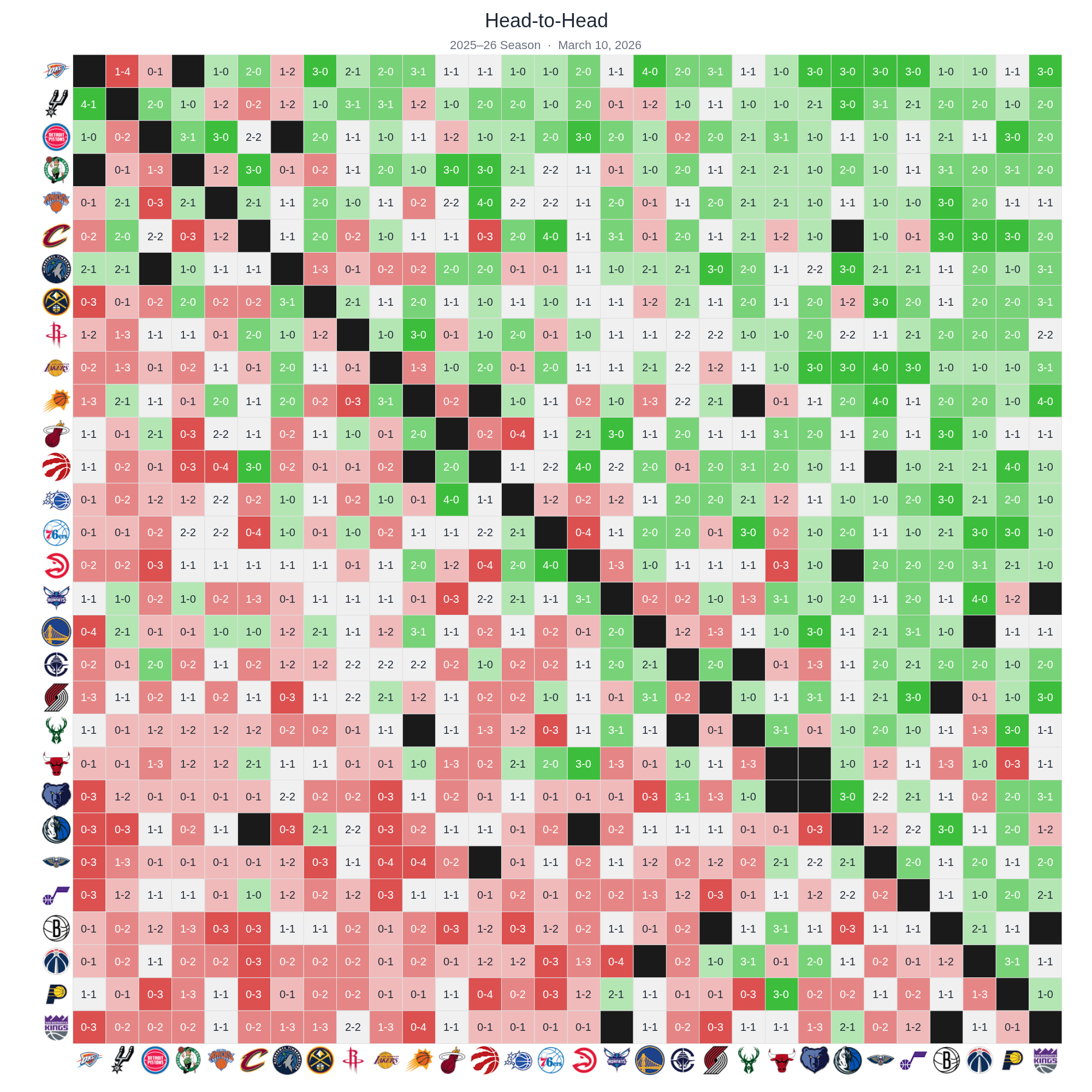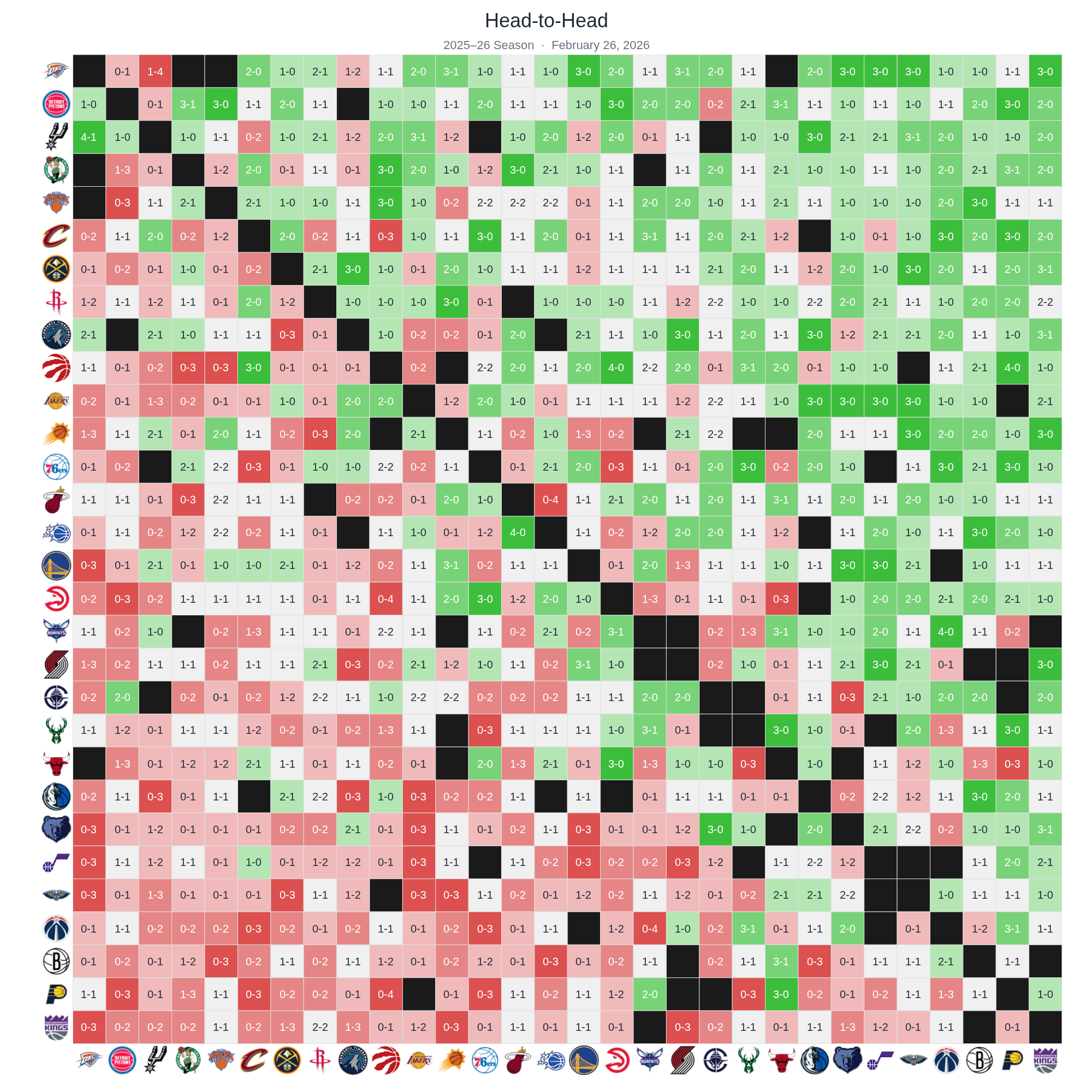 Every team's record against every other team in the 2025–26 season